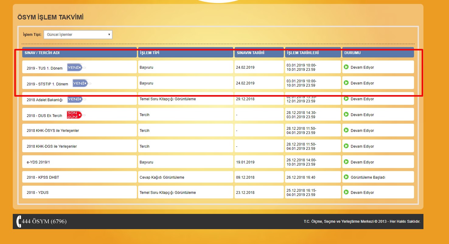 ÖSYM tarafından uygulanan, Tıp Doktorluğu Alanında Yurt Dışı Yükseköğretim Diploma Denkliği İçin Seviye Tespit Sınavı anlamına gelen 2019 STS Tıp Doktorluğu 1. dönem sınavı ile Tıpta Uzmanlık Eğitimi Giriş Sınavı olarak tanımlanan 2019 TUS 1. dönem sınavları için başvurular alınmaya başladı. ÖSYM iki sınav için de daha önceden başvuru kılavuzlarını yayımlanmıştı. Adayların sınav başvurularını gerçekleştirmeden önce kılavuzları detaylı bir şekilde incelemeleri gerekiyor.